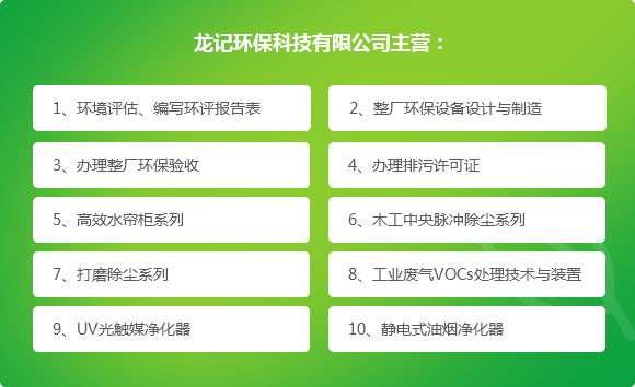 東莞市龍記環保科技有限公司 經營范圍:工業廢氣凈化器、中央除塵設備、廢氣環保工程、通風工程設備、無塵車間、水簾柜、廢水處理、廢氣處理、消音房設備、車間除塵設備、環保空調、家具噴漆房等。
